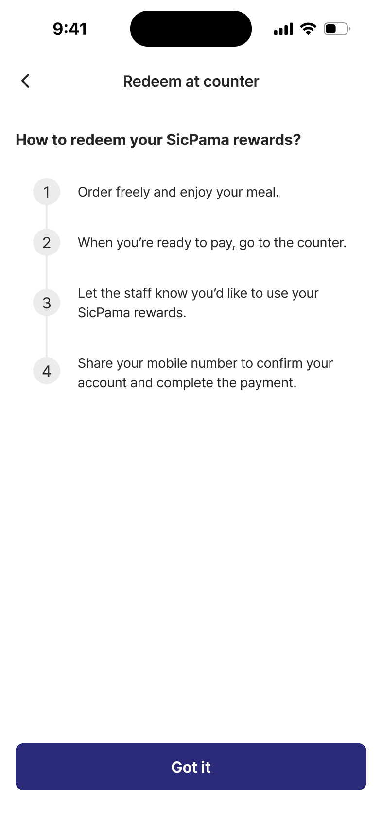 Redemption depended on staff assistance, so promotions weren’t self-serve or clearly visible to users.