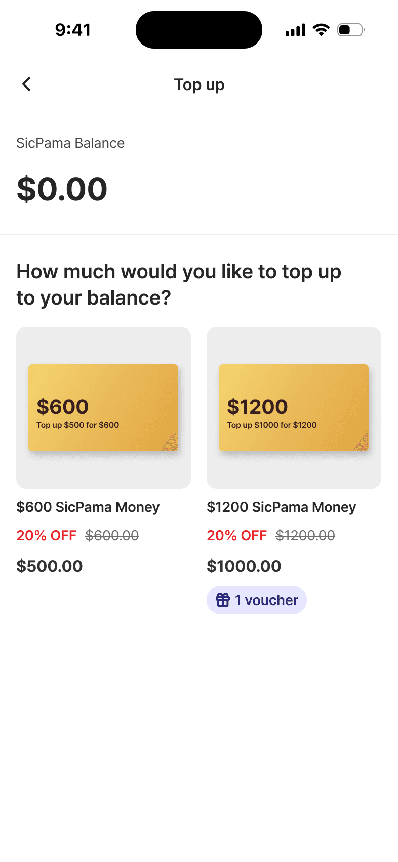 Top up deals purchase