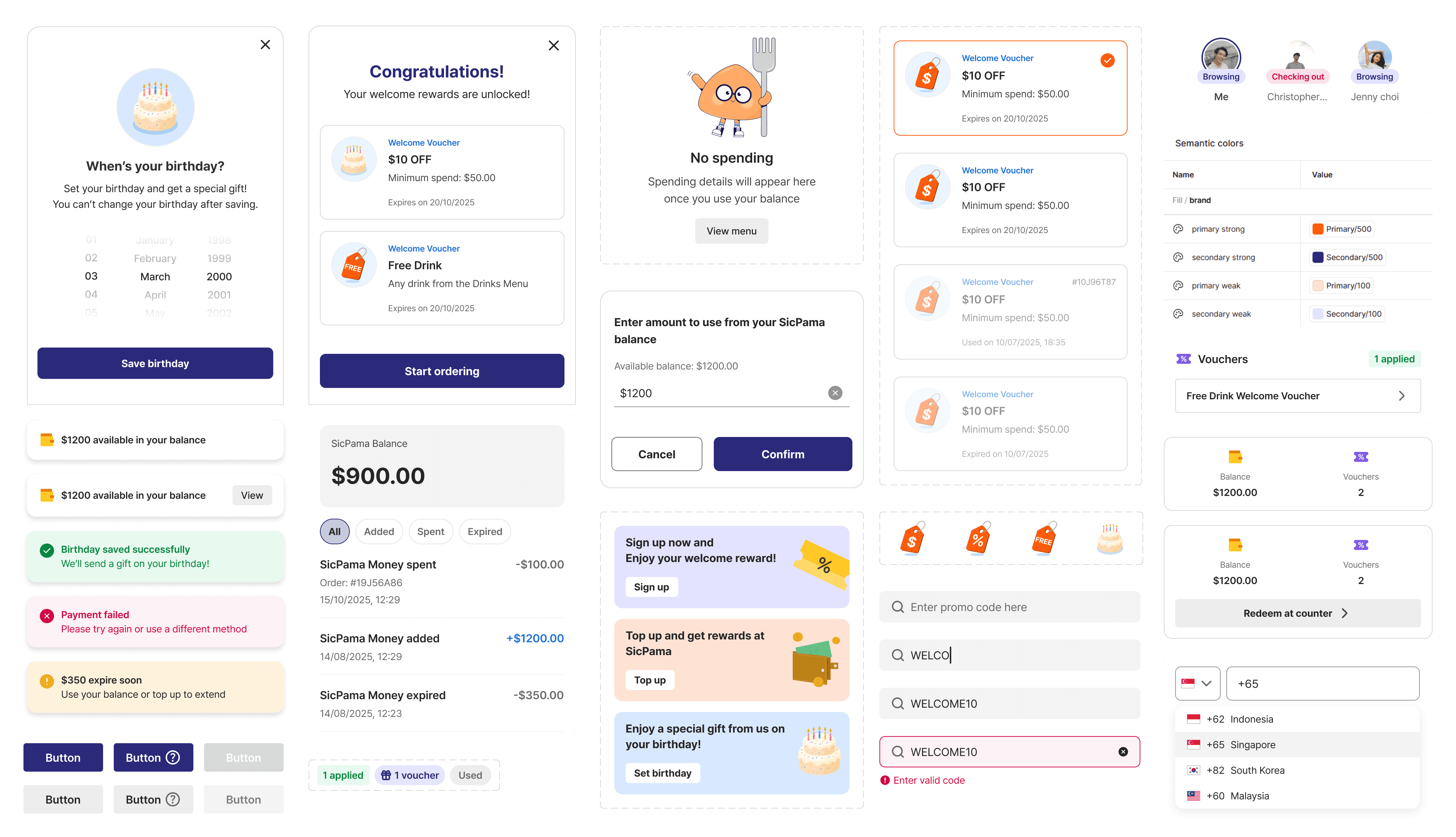 The mobile ordering app lacked a consistent design system, which slowed delivery and created inconsistency. That's why I built a new scalable design system that covered SicPama's foundational components and new loyalty features. My goal was to ensure that the new system should be fast to develop, efficient for fast QR ordering, and reusable for any type of SicPama's merchants. This included creating tokens for colors, typography, and spacing for design consistency. The new design system helped to speed up the delivery and prepare SicPama's web app for future updates.